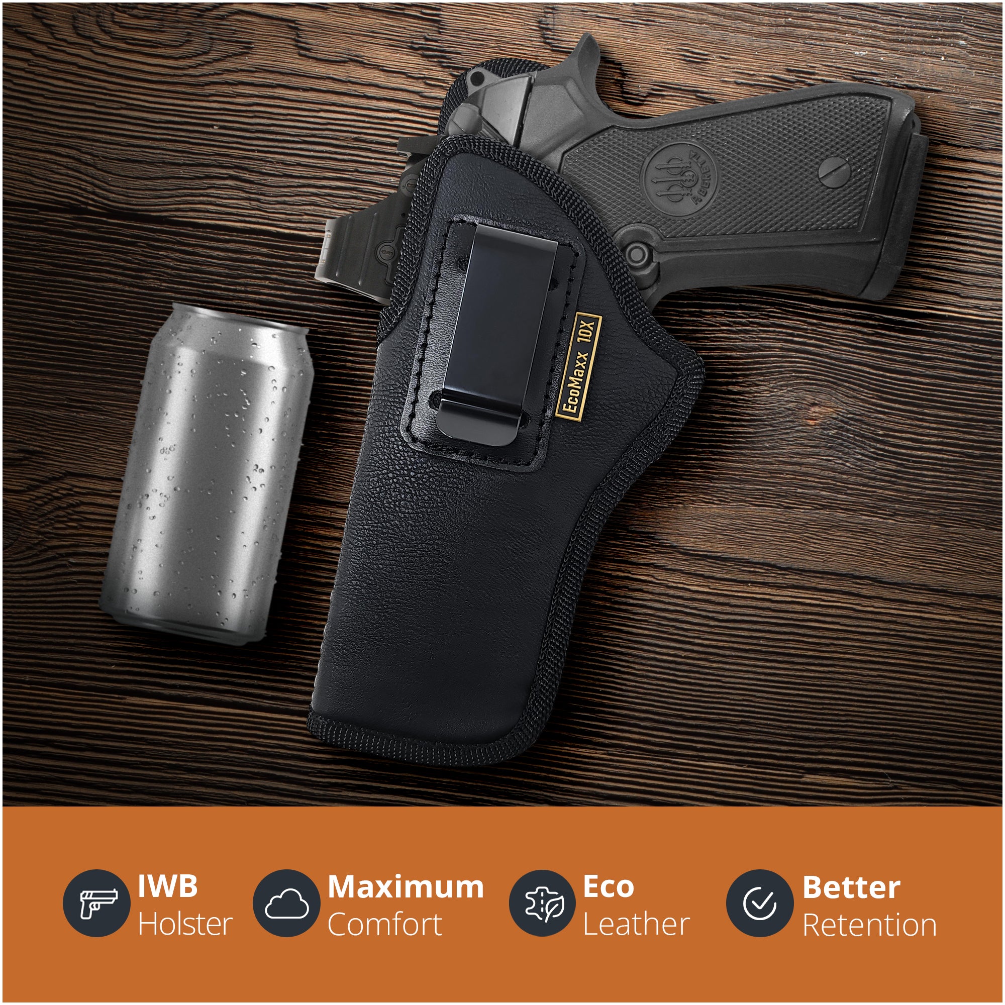 Soft suede interior to protect your gun from scratches. Our gun leather holster is sweat and water resistant, ideal for everyday use or outdoor activities.
