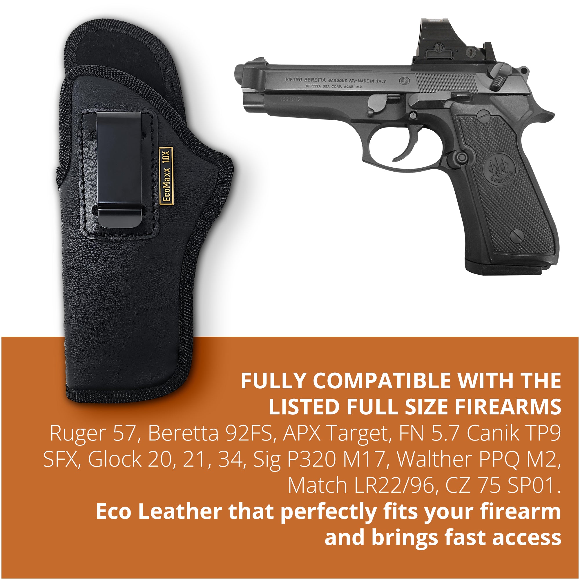 Compatible with Ruger 57, Beretta 92FS, APX Target, FN 5.7 Canik TP9 SFX, Glock 20, 21, 34, Sig P320 M17, Walther PPQ M2, Match LR22/96, CZ 75 SP01. Left Hand.
