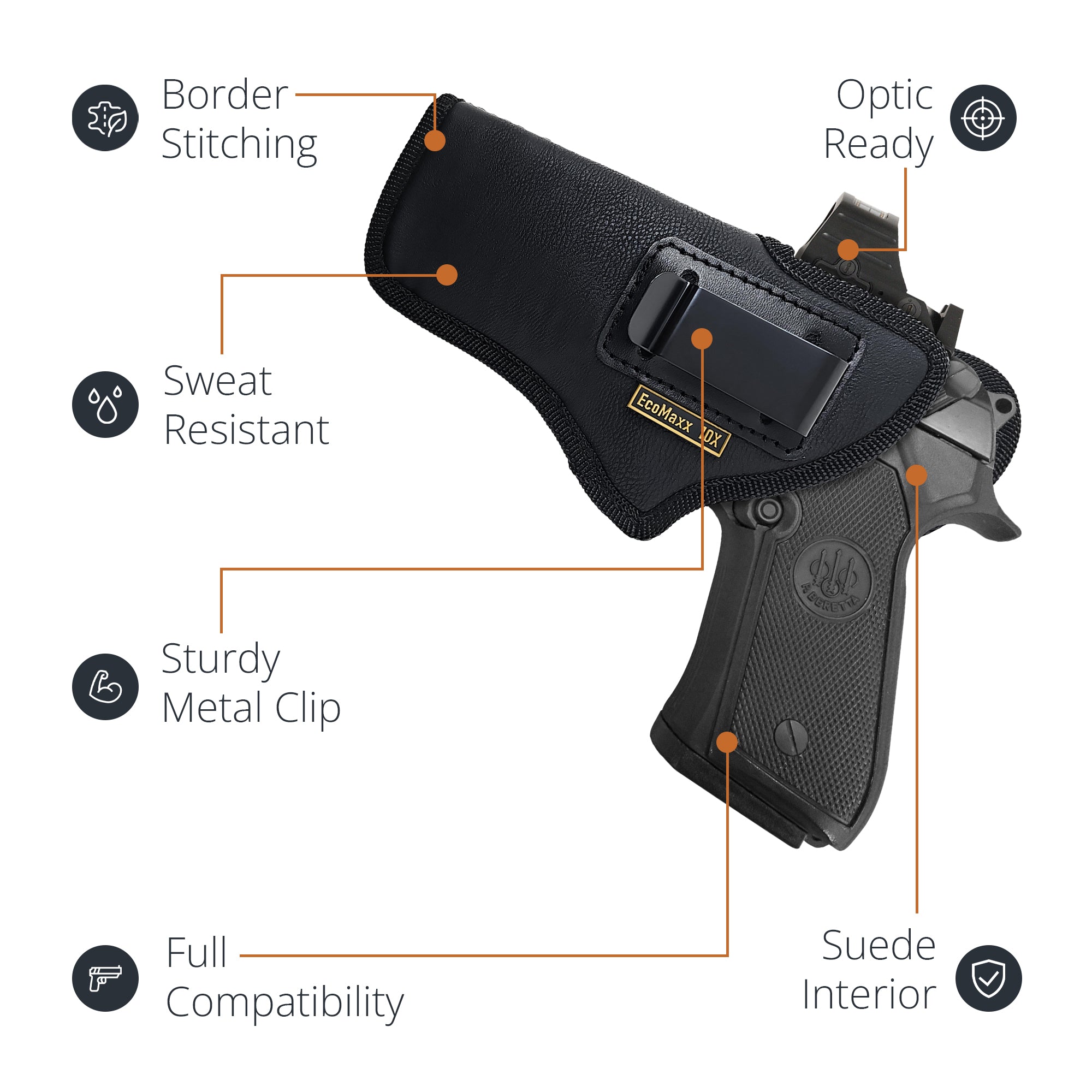 Black Optic Ready IWB Holster for Beretta 92FS, Glock 20, 21, 34. Left Hand
