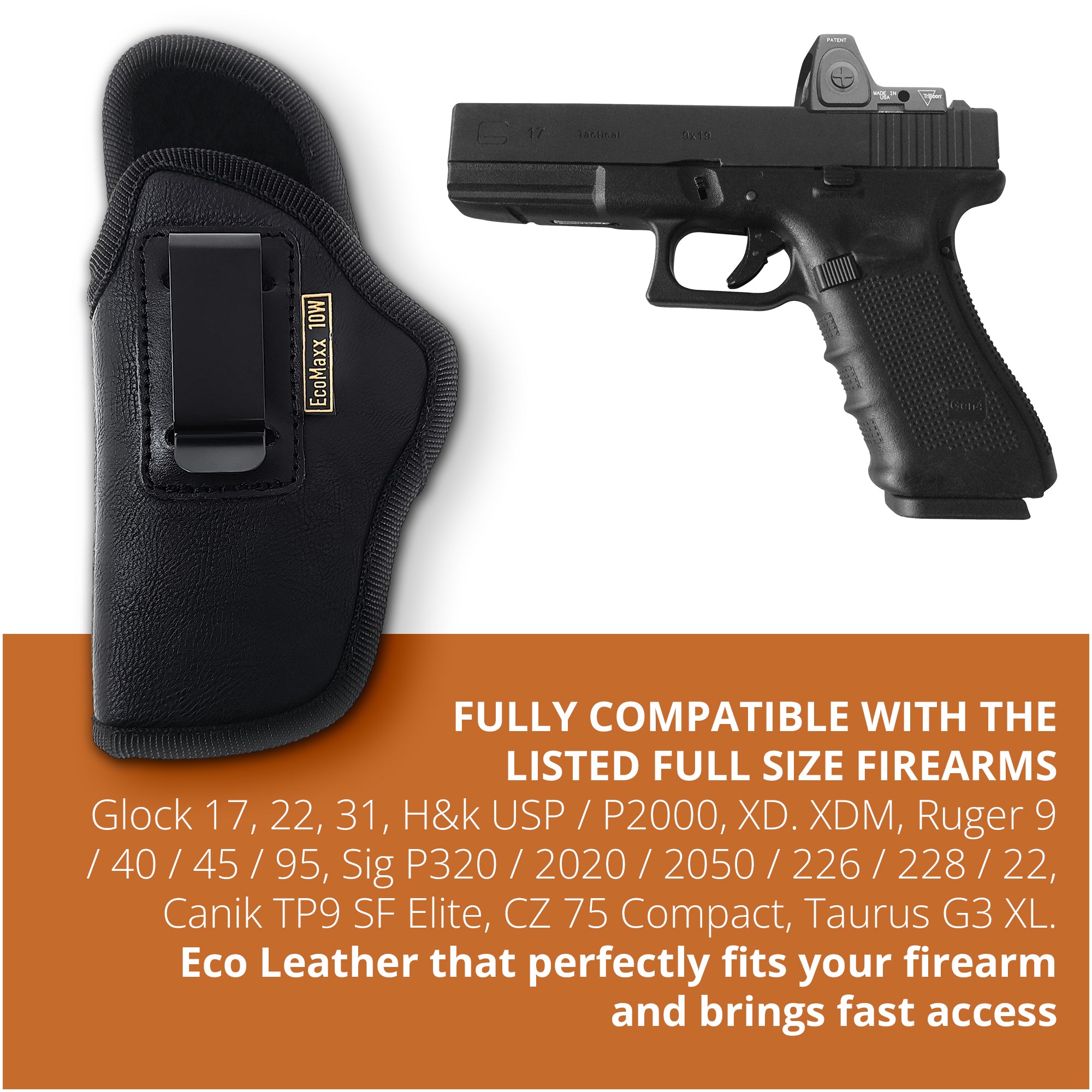 Compatible with Glock 17, 22, 31, H&k USP / P2000, XD. XDM, Ruger 9 / 40 / 45 / 95, Sig P320 / 2020 / 2050 / 226 / 228 / 22, Canik TP9 SF Elite, CZ 75 Compact, Taurus G3 XL, G3 Tactical, H&K VP9 A1 K. Walther PPQ M2. Walther PDP Full, Tisas PX9, Keltec PR 5.7. Left Hand.