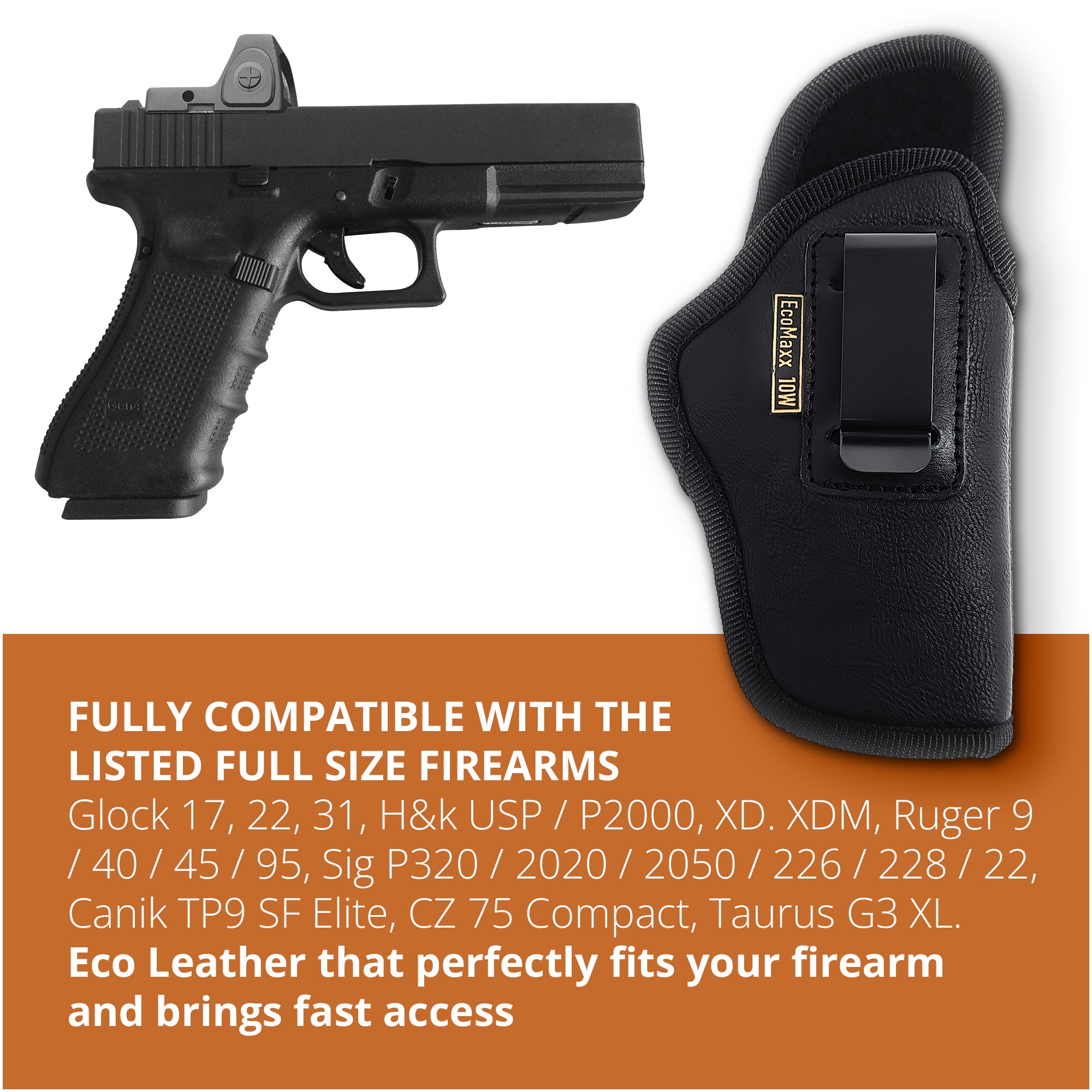Compatible with Glock 17, 22, 31, H&k USP / P2000, XD. XDM, Ruger 9 / 40 / 45 / 95, Sig P320 / 2020 / 2050 / 226 / 228 / 22, Canik TP9 SF Elite, CZ 75 Compact, Taurus G3 XL, G3 Tactical, H&K VP9 A1 K. Walther PPQ M2. Walther PDP Full, Tisas PX9, Keltec PR 5.7. Right Hand.