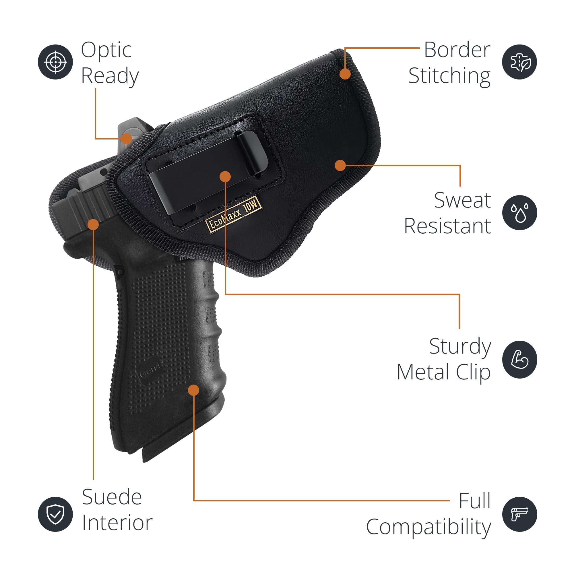 Black Optic Ready Universal IWB Holster for Glock 17, 22, 31, Sig P320. Right Hand