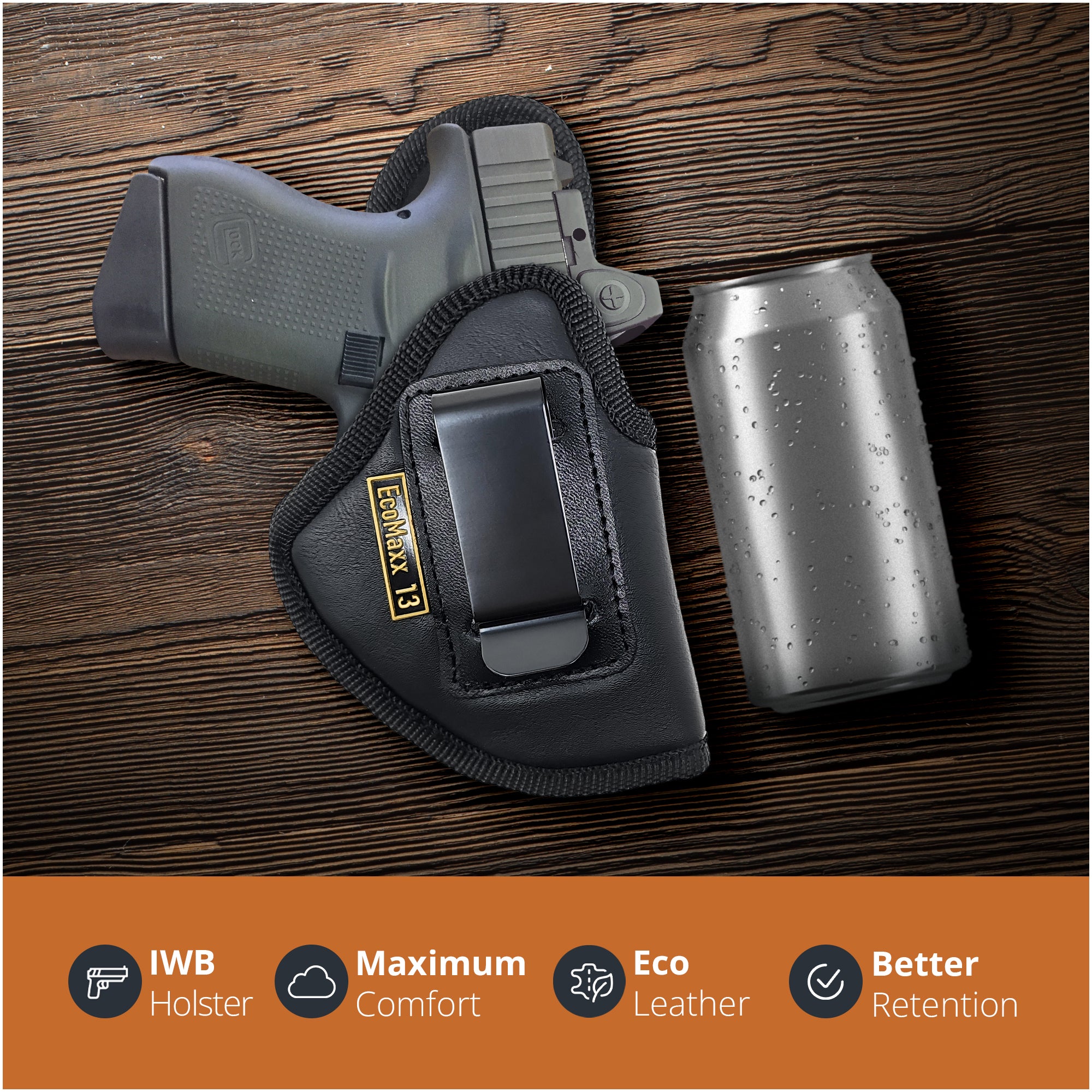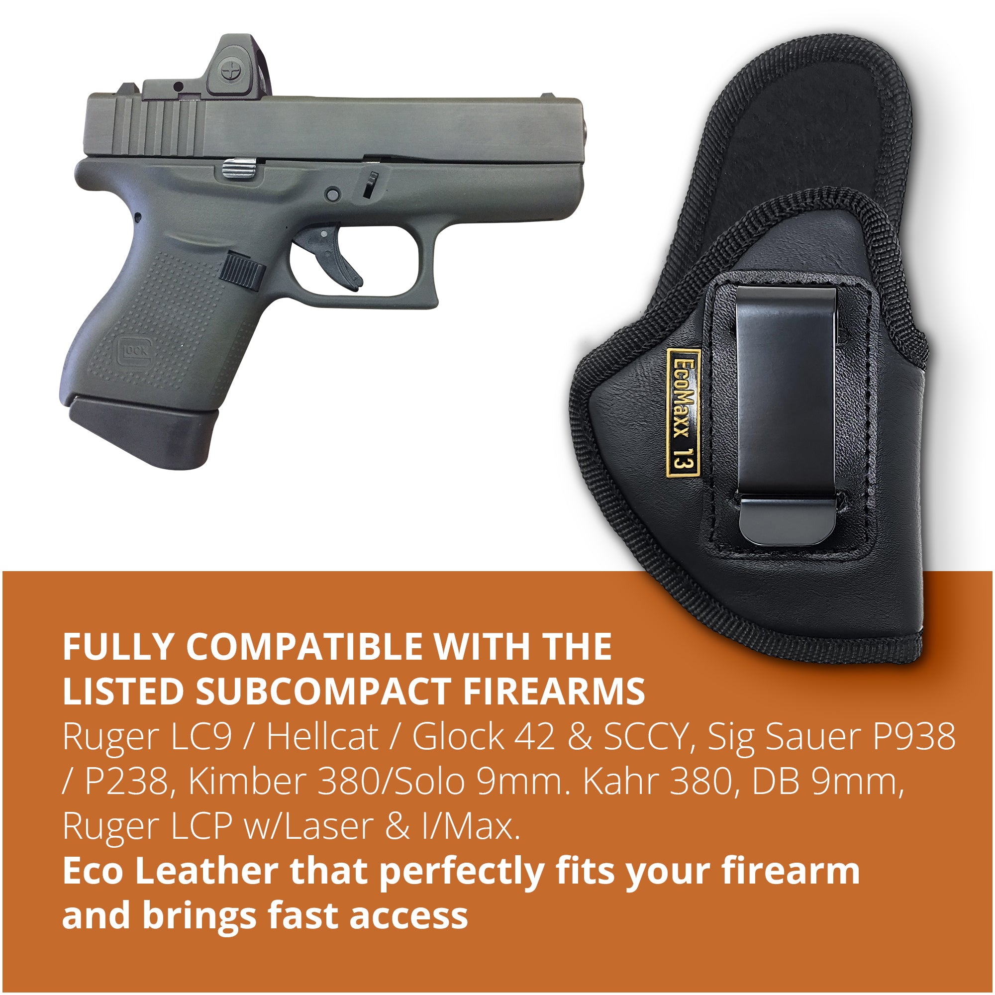 Black Subcompact IWB Eco Leather Holster with Light for Glock 43, 42, SCCY (Right Hand)