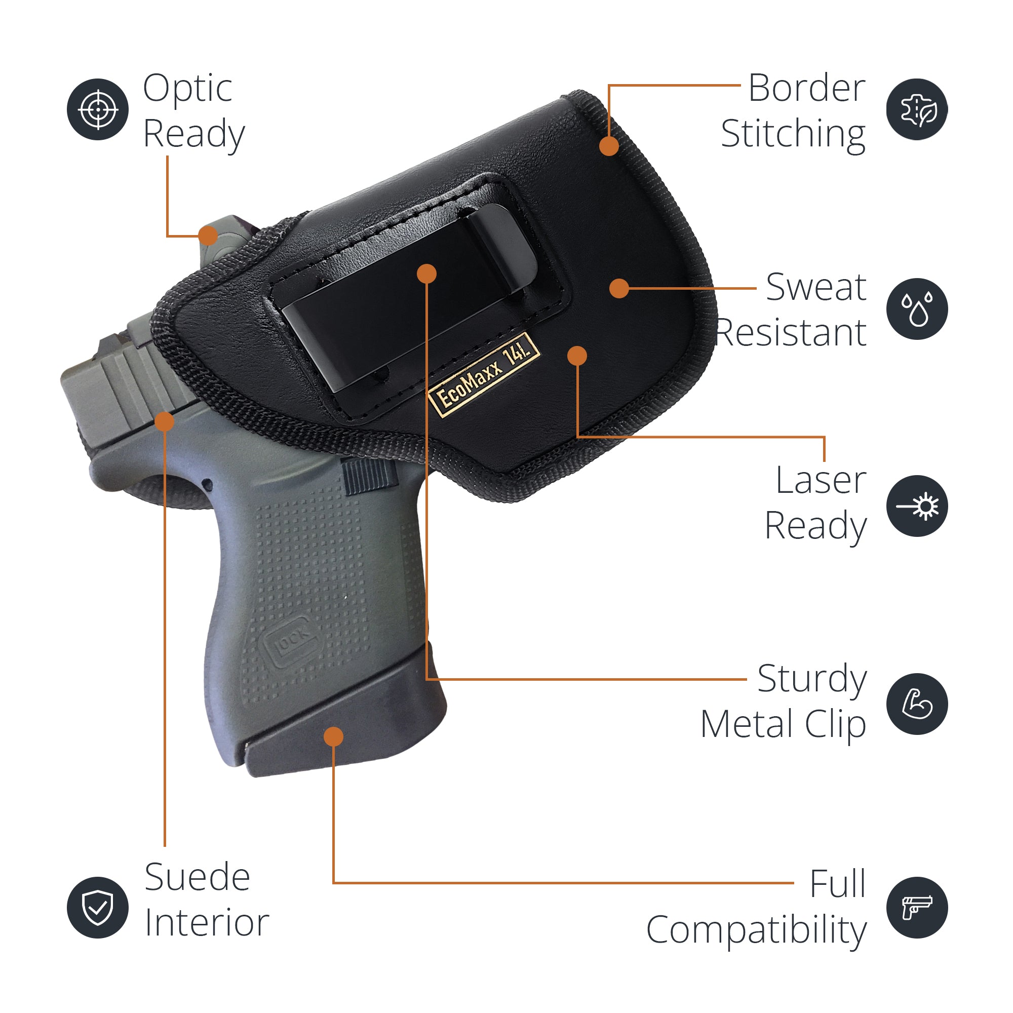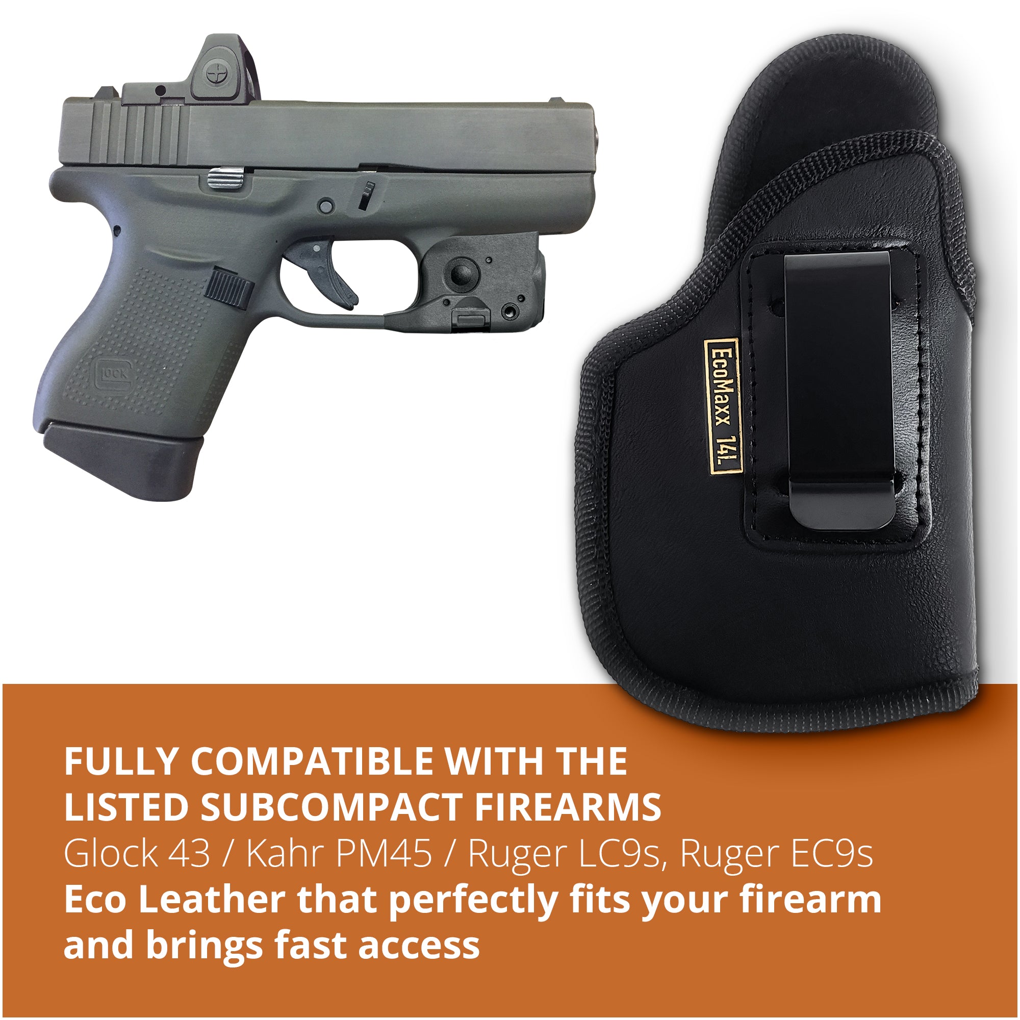 Compatible with Glock 43 / Kahr PM45 / Ruger LC9s, Ruger EC9s, Kahr X9. Right Hand.