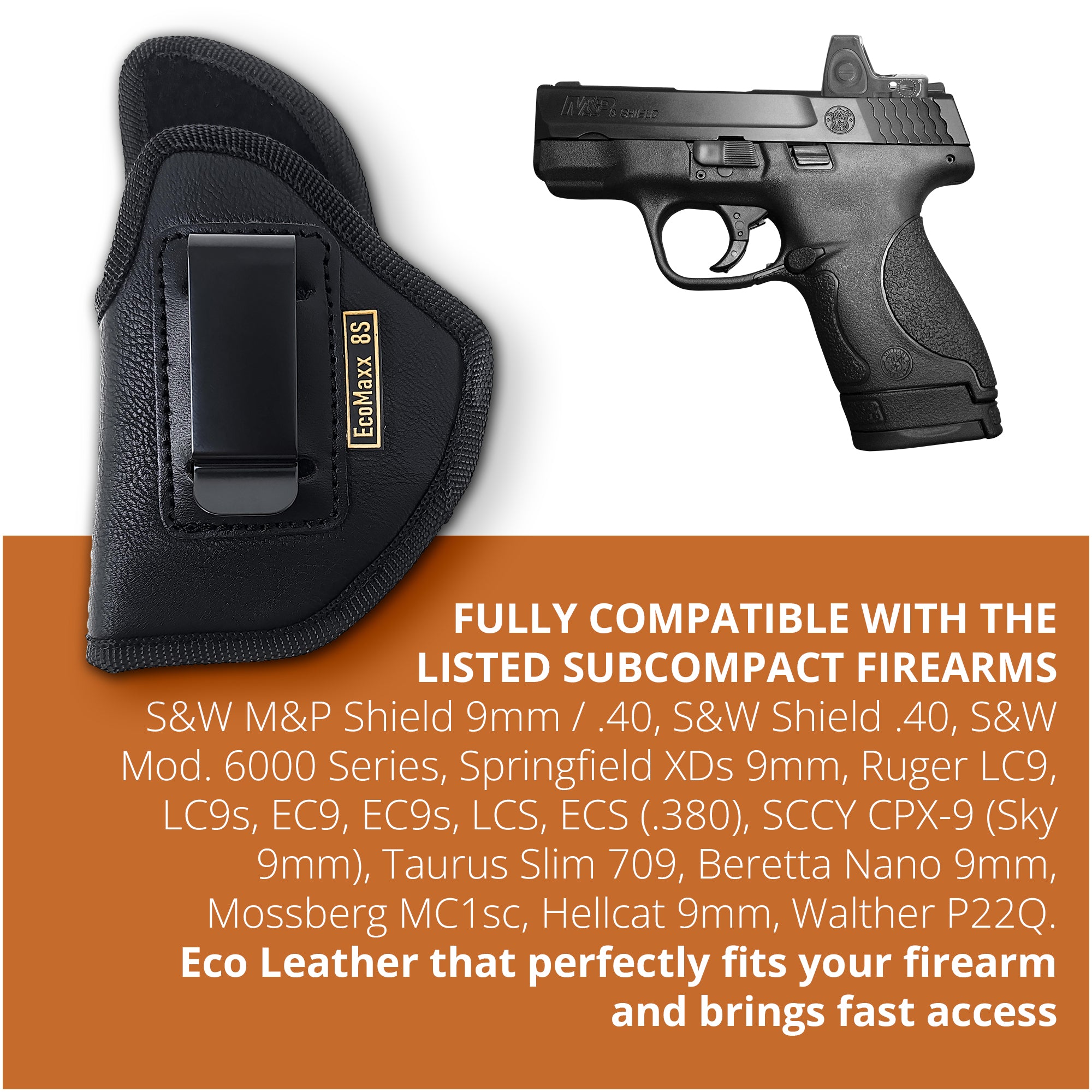 Compatible with S&W M&P Shield 9mm / .40, S&W Shield .40, S&W Mod. 6000 Series, Springfield XDs 9mm, Ruger LC9, LC9s, EC9, EC9s, LCS, ECS (.380), SCCY CPX-9 (Sky 9mm), Taurus Slim 709, Beretta Nano 9mm, Mossberg MC1sc, Hellcat 9mm, Walther P22Q, Canik METE MC9, 1791 size SC2. Left hand.