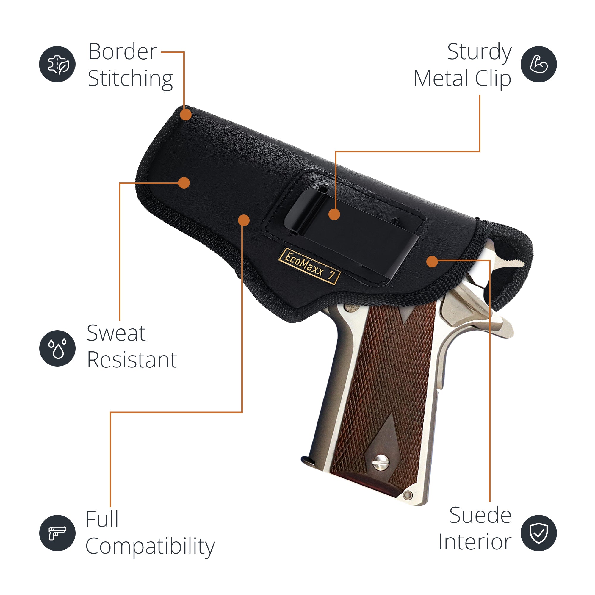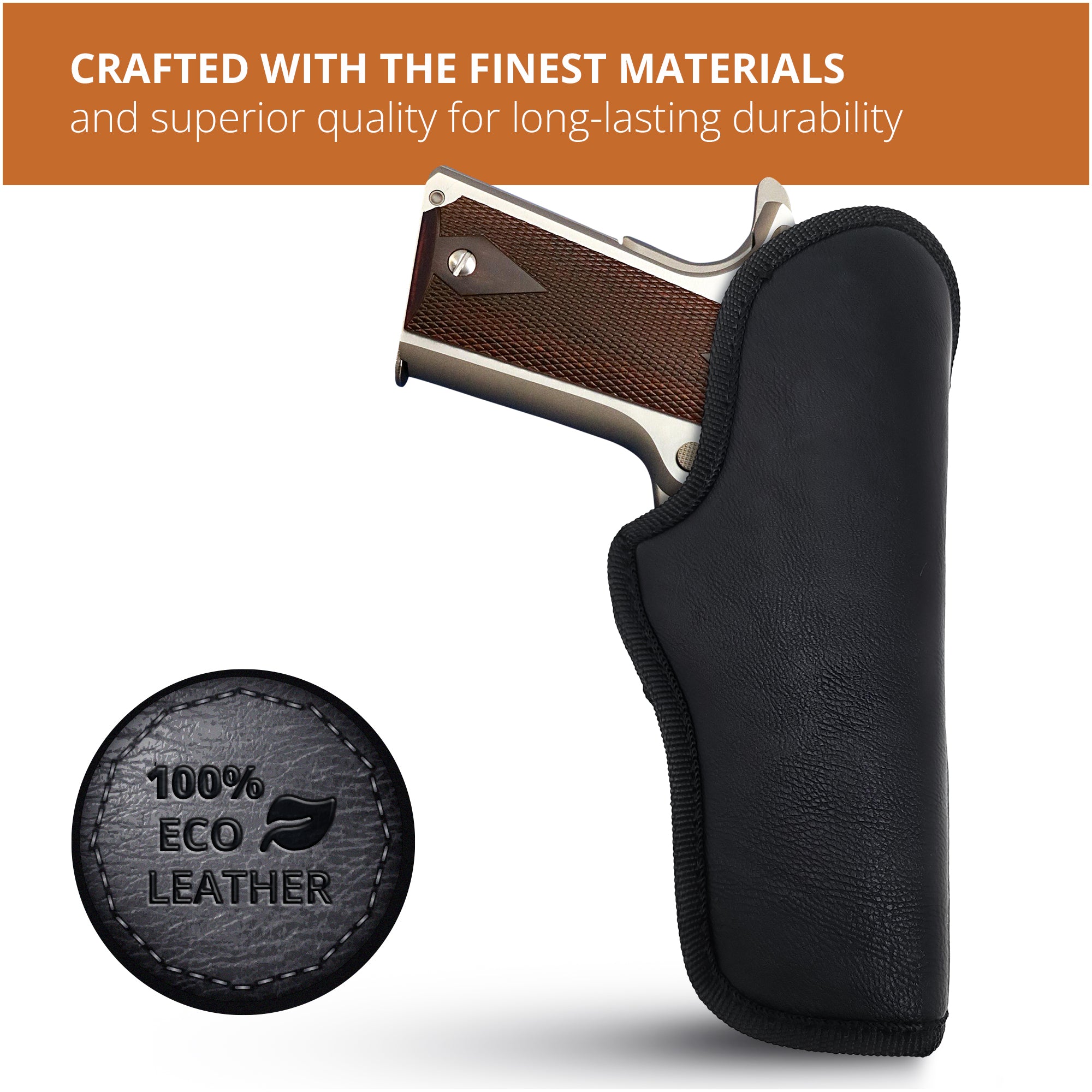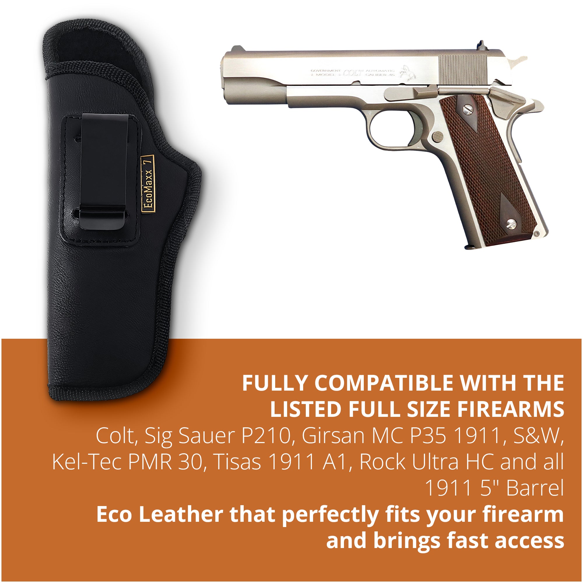 Black Eco Leather IWB Holster for 1911 5". Compatible with Colt, Sig Sauer P210. Left Hand