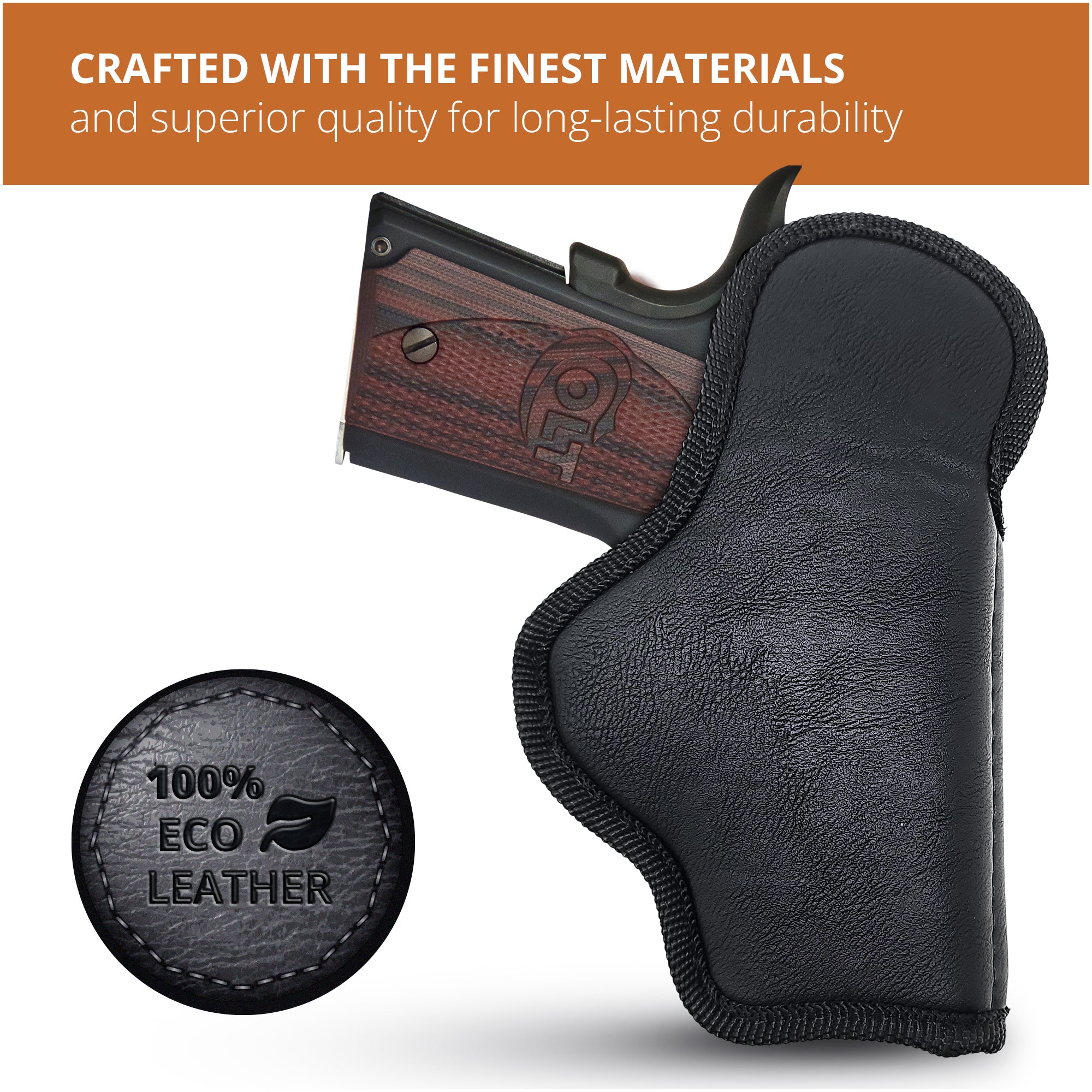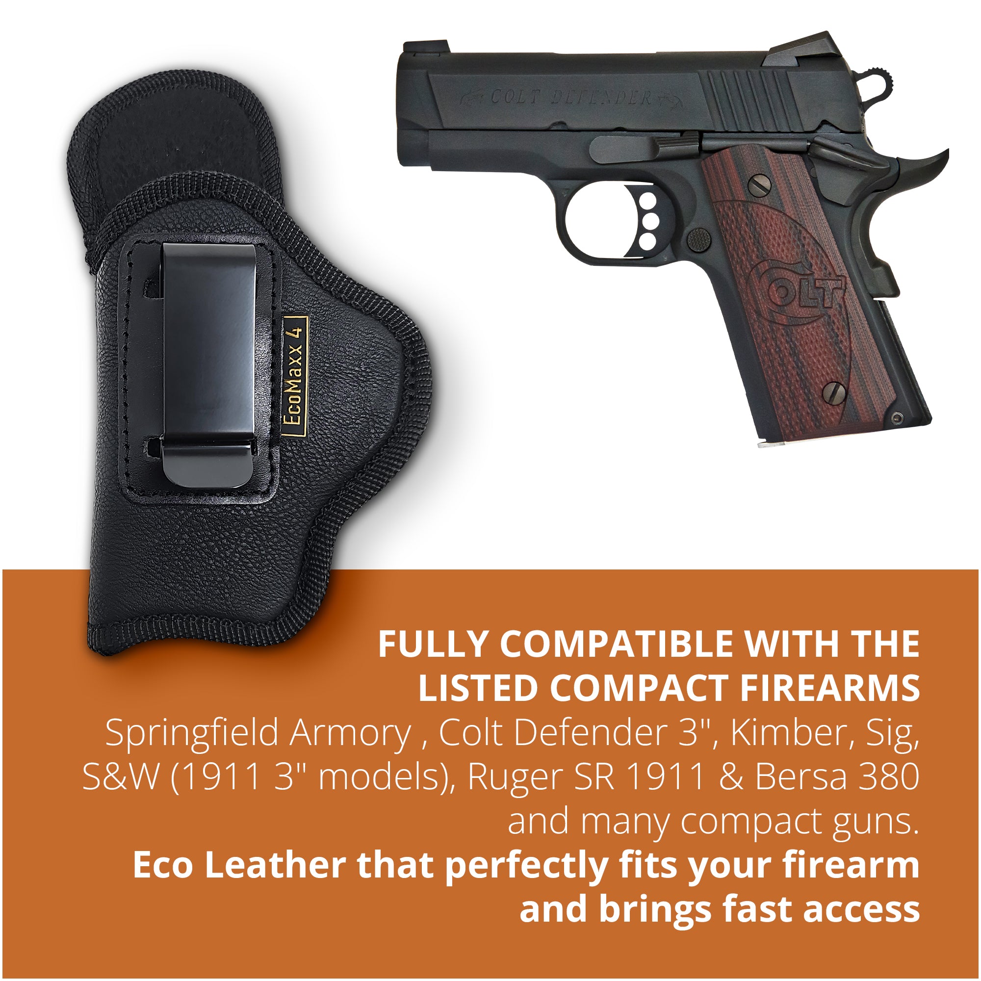 Black Compact Eco Leather IWB Holster. Fits Colt Defender 3", S&W 1911 3". Left Hand