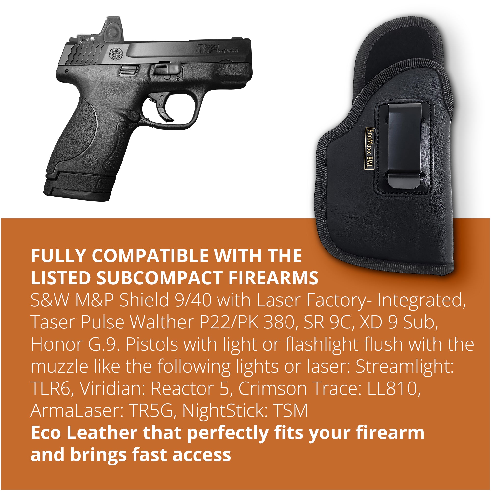 Black Subcompact IWB Eco Leather Holster with Light/Laser for S&W M&P Shield 9/40. Right hand