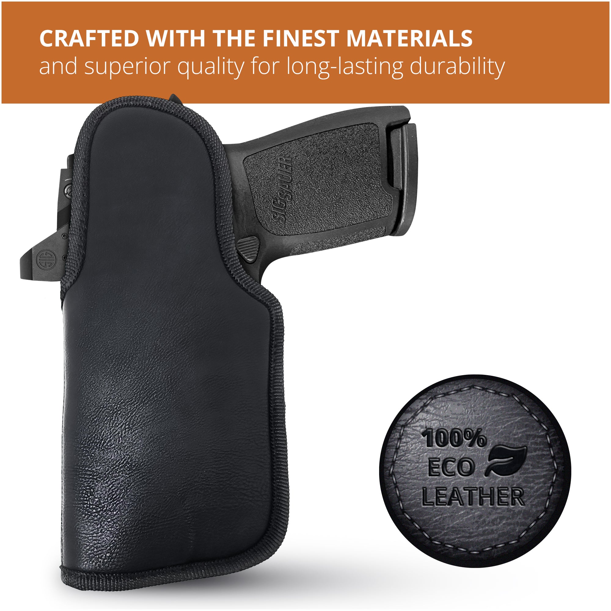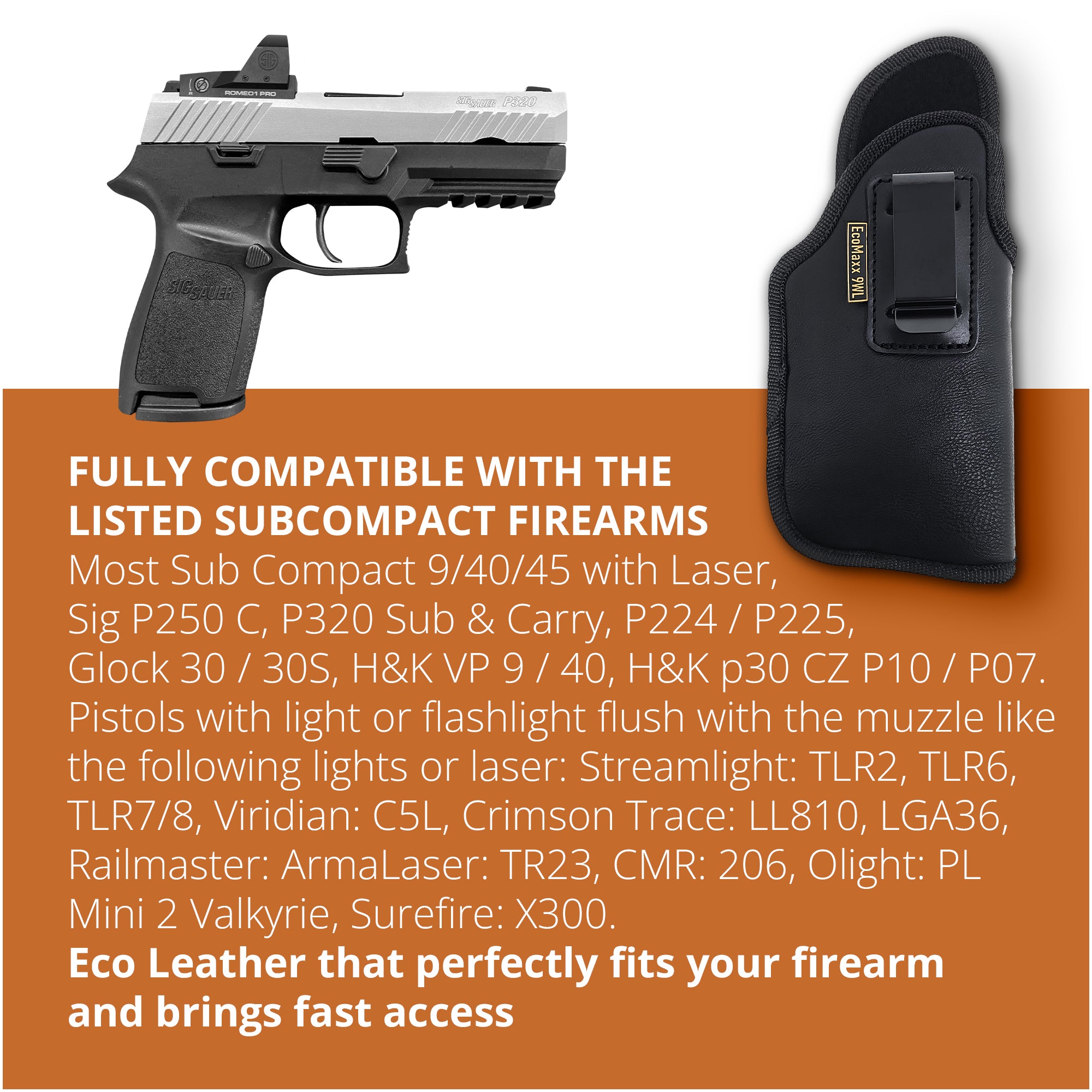Black Subcompact IWB Eco Leather Holster with Light/Laser for Sig Sauer P320. Right Hand
