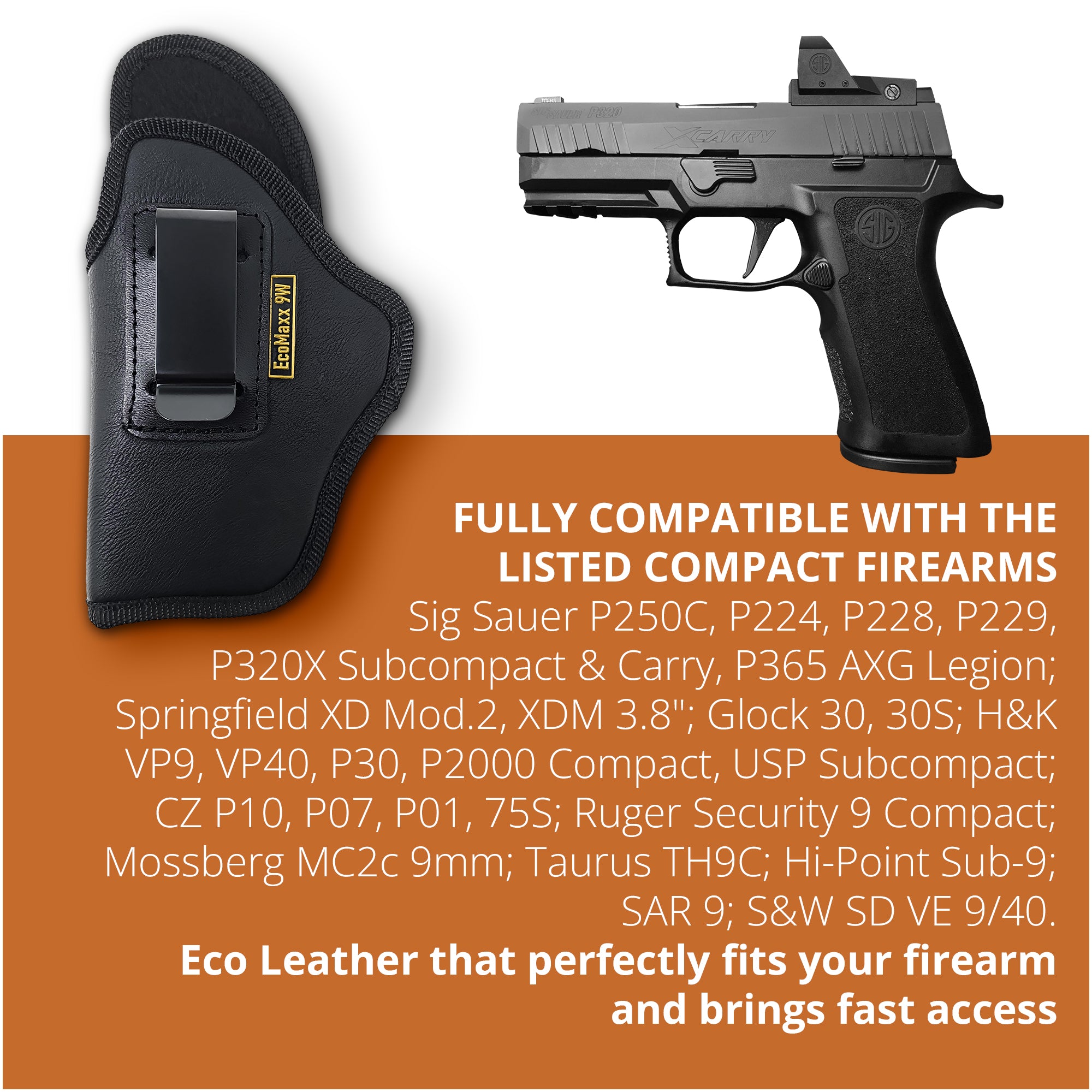 Optic Ready Compact Eco Leather IWB Holster for SIG Sauer P320X. Left Hand