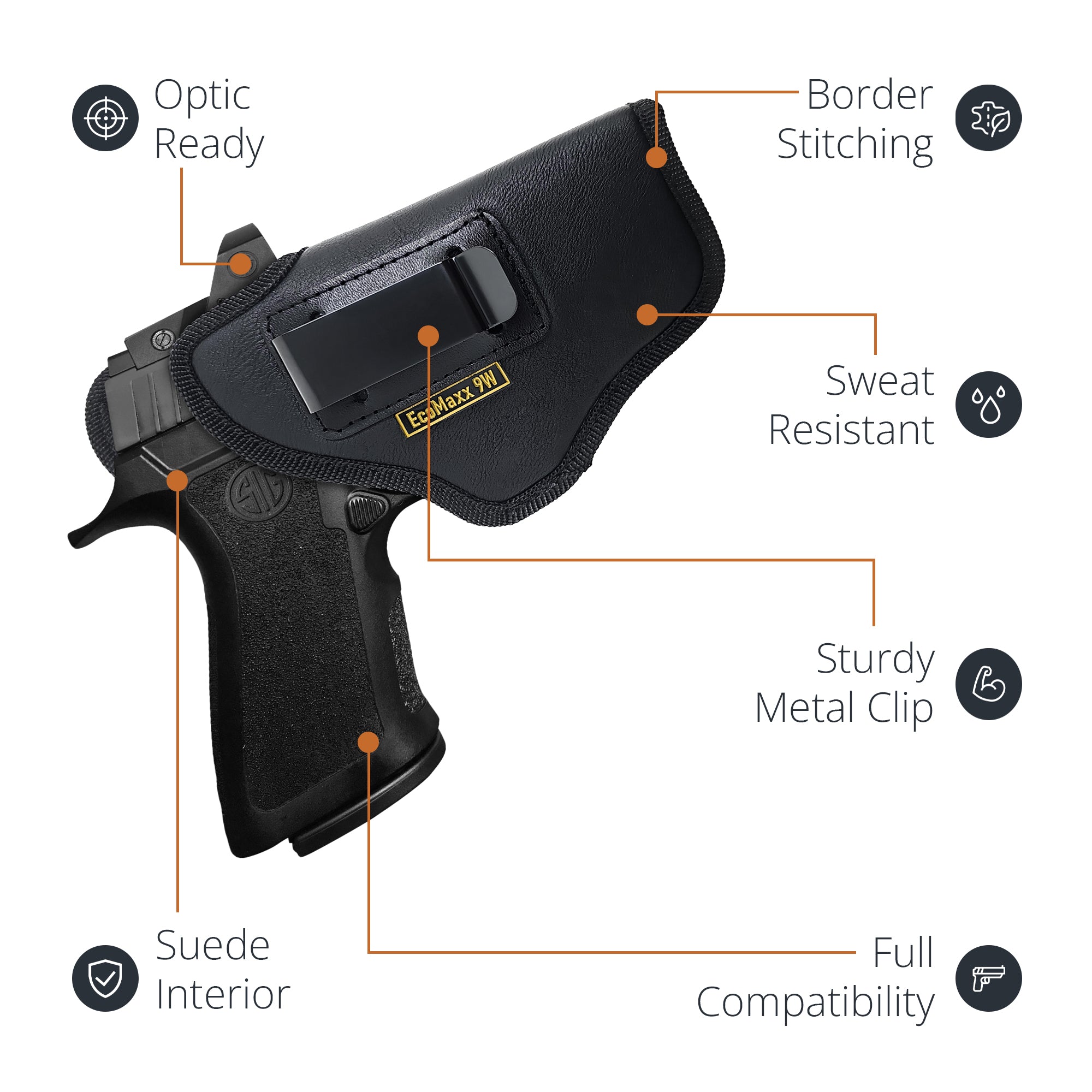 Black Optic ready IWB Carry Eco Leather Holsters for Pistols
