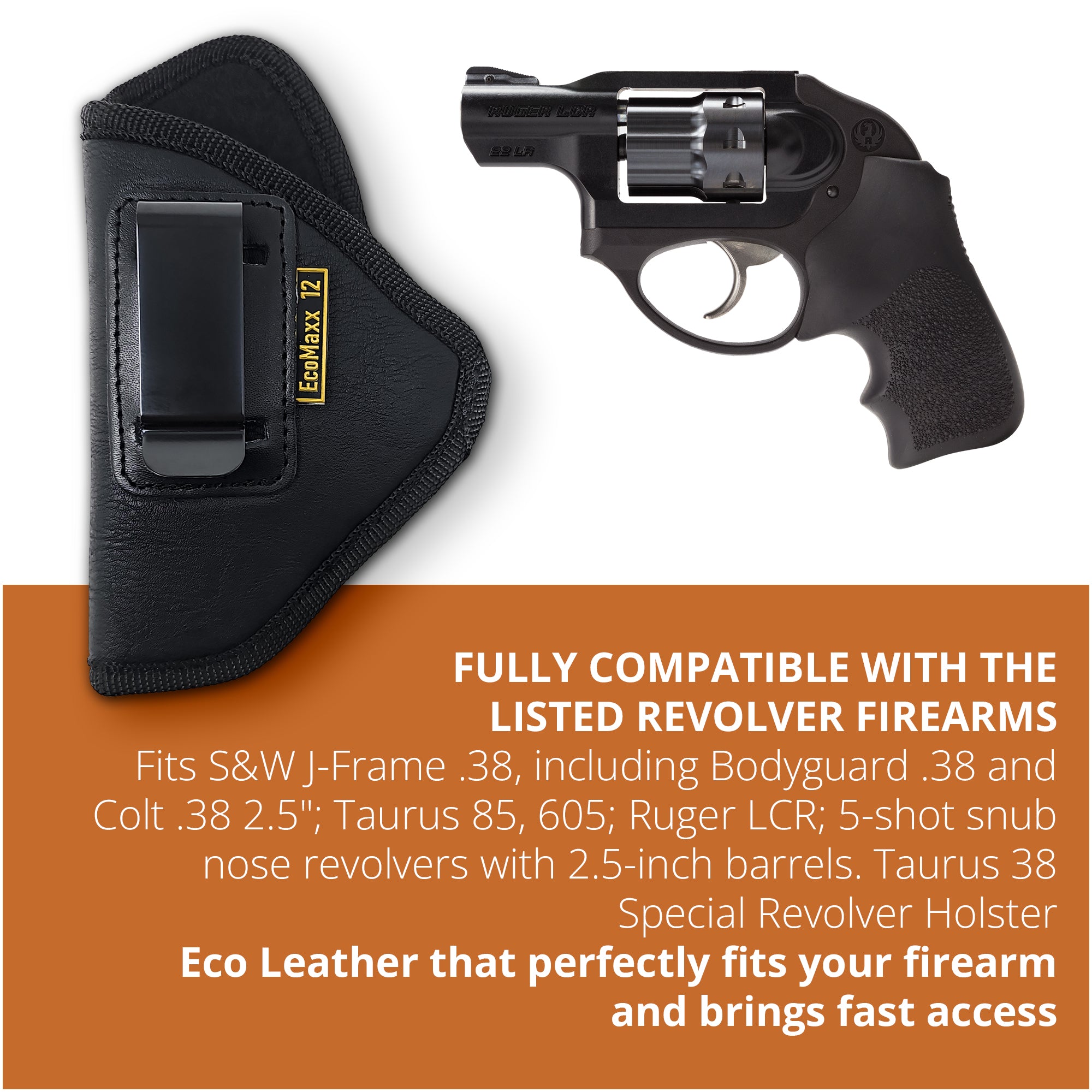IWB Eco Leather 38 Revolver Holster. Compatible with 38 J Frames Left Hand