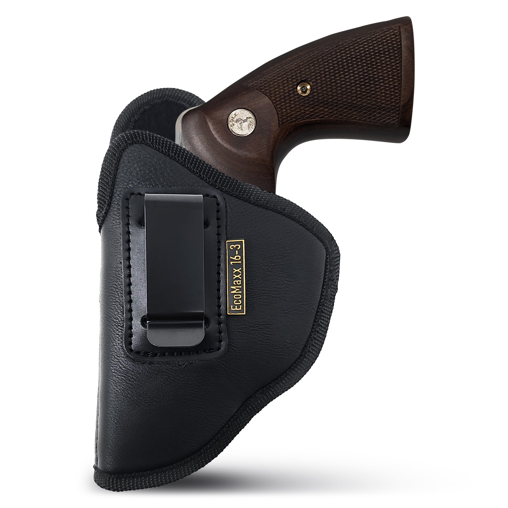 Black IWB Eco Leather Revolver Holster. Compatible with Taurus Judge, Ruger Sp101.