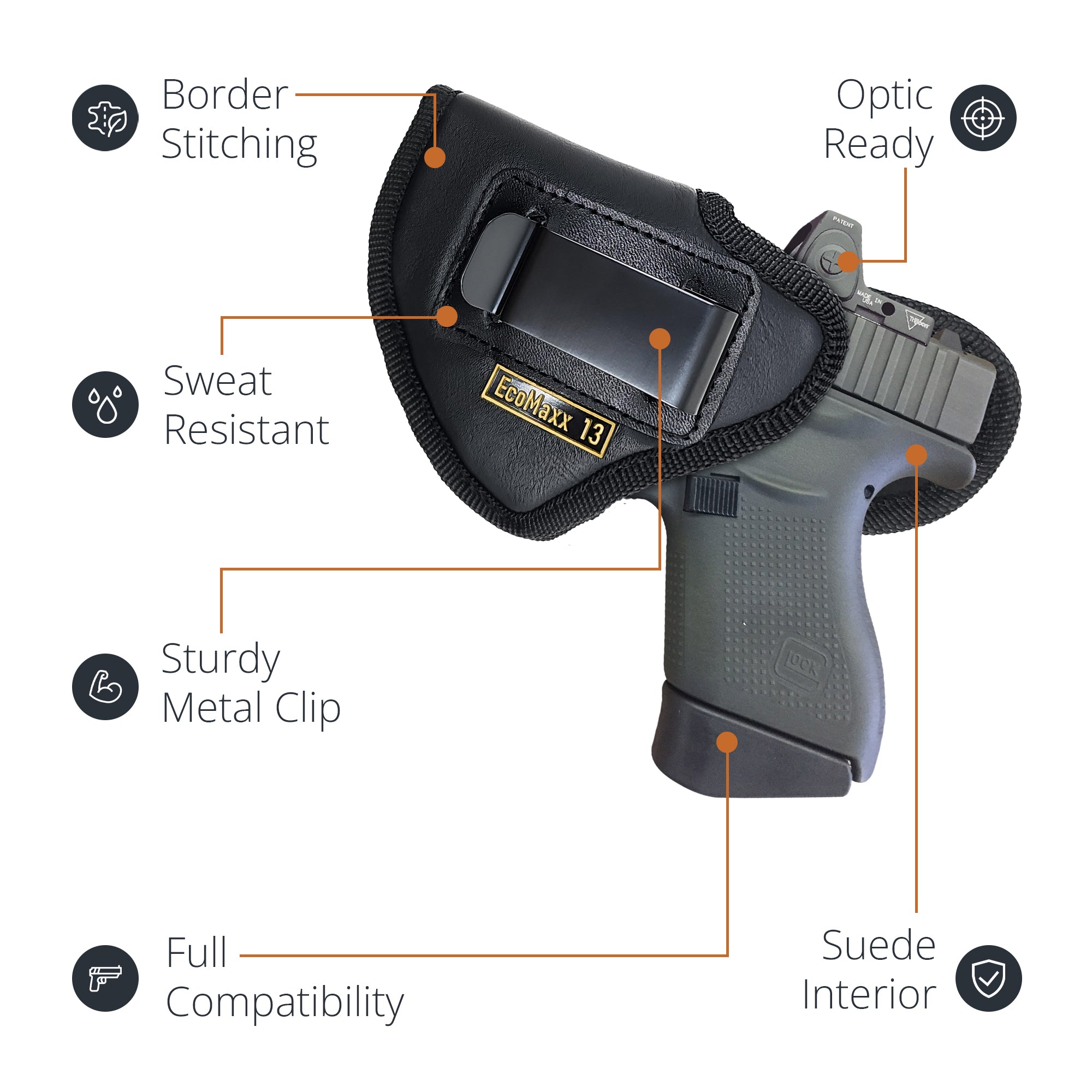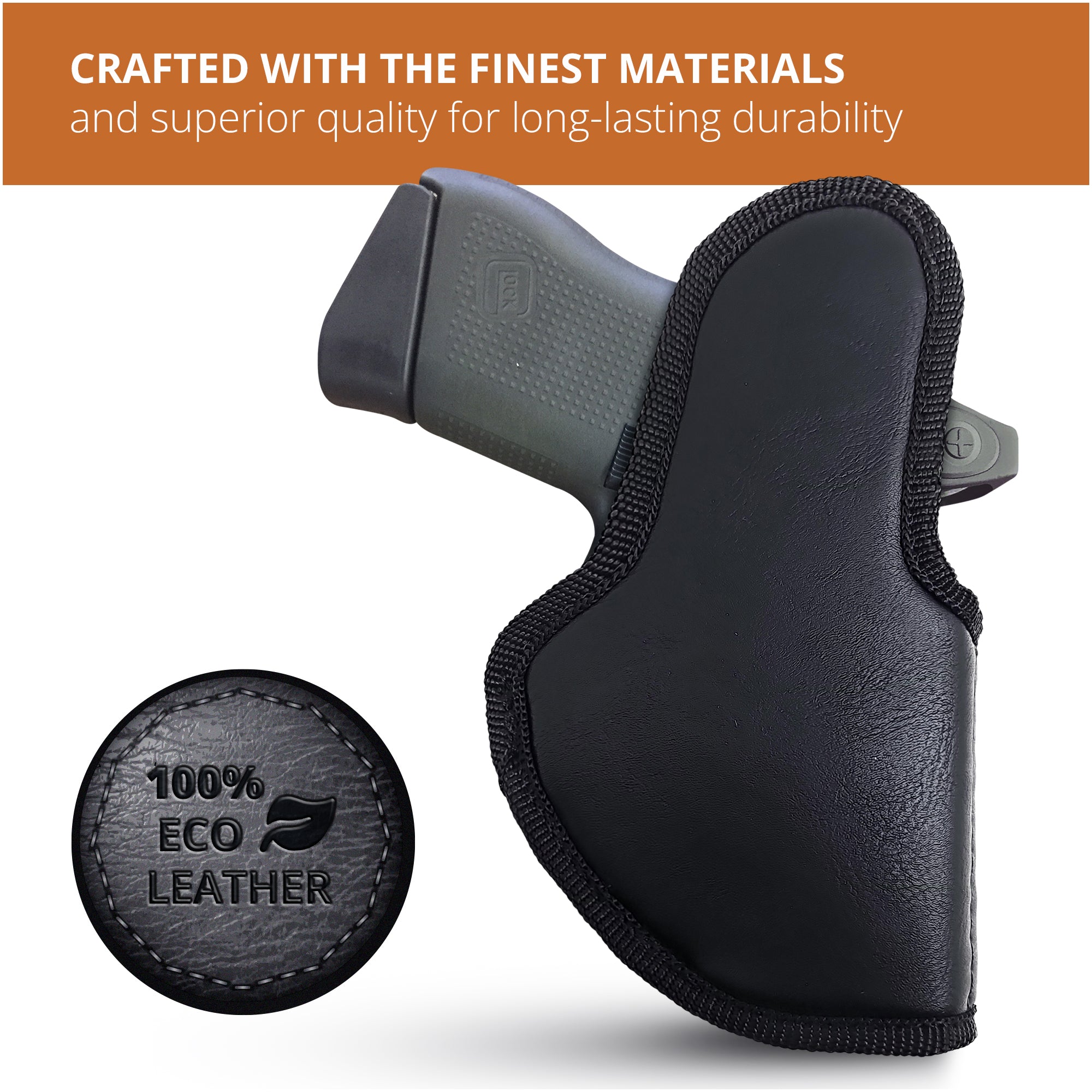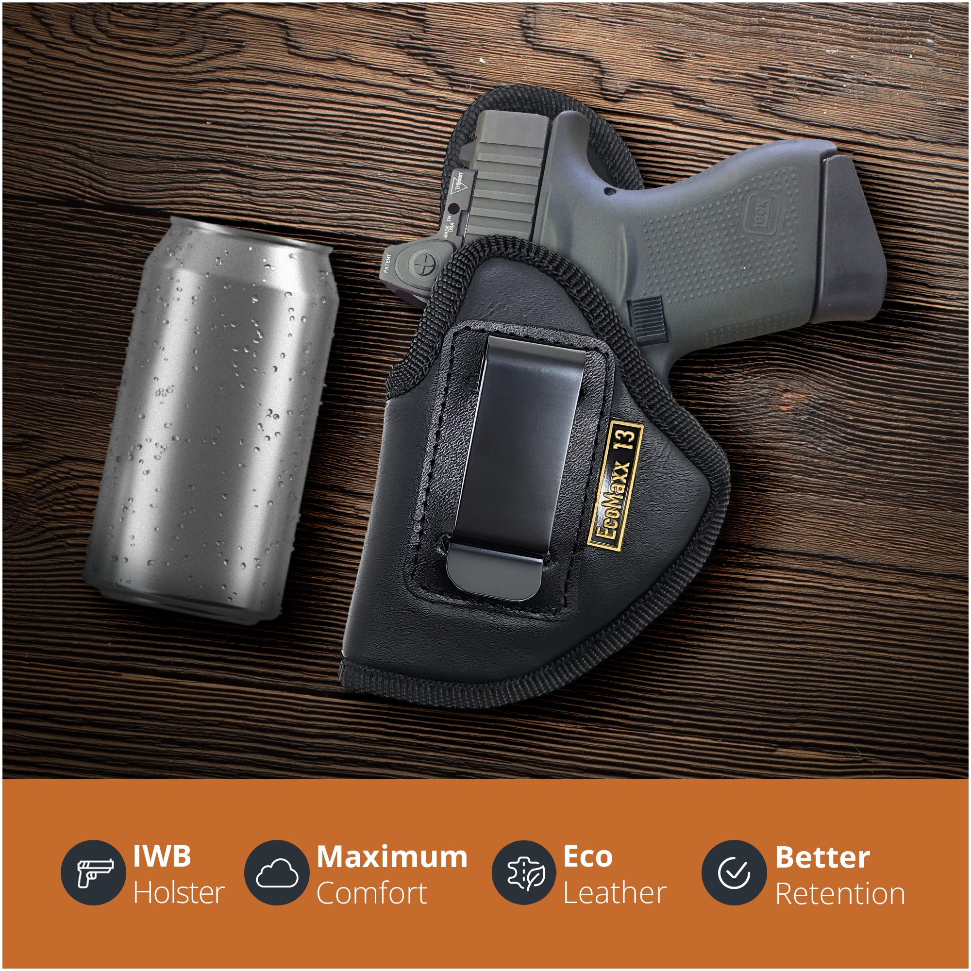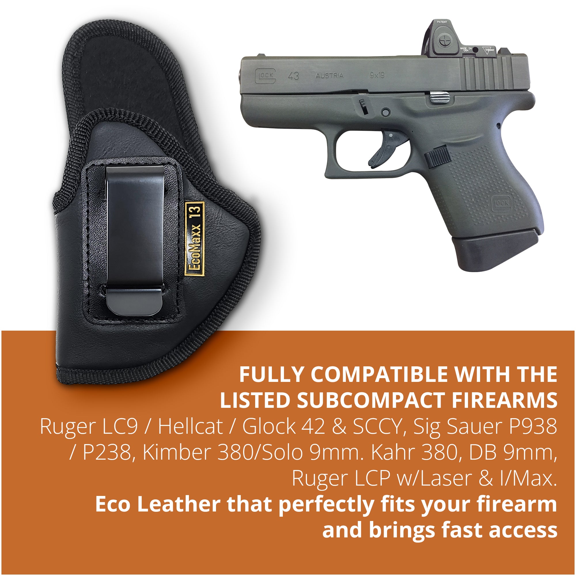 Black Subcompact IWB Eco Leather Holster with Light for Glock 43, 42, SCCY (Left Hand)
